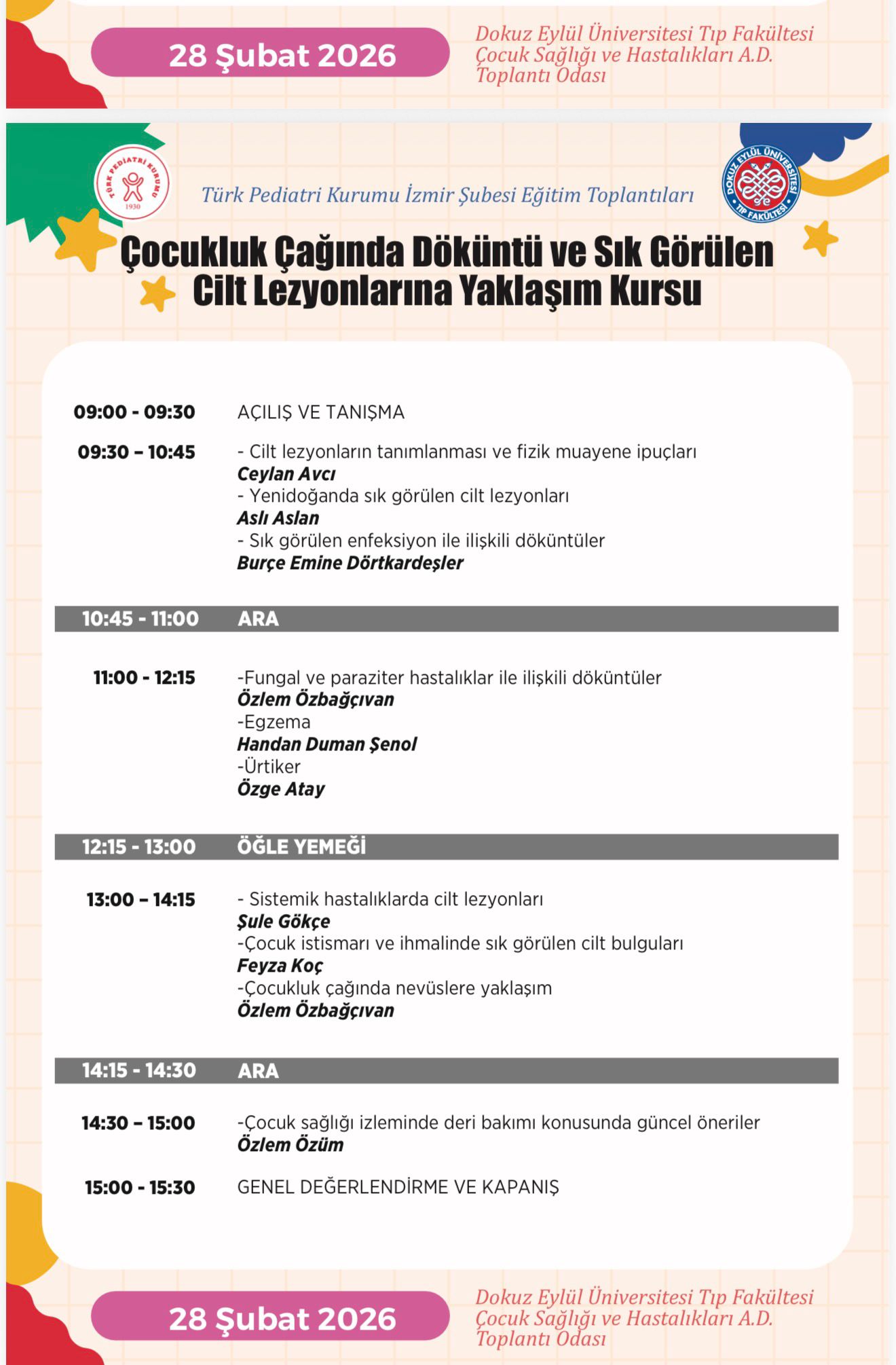 Çocukluk Çağında Döküntü ve Sık Görülen Cilt Lezyonlarına Yaklaşım Kursu Şubat 2026 - İzmir